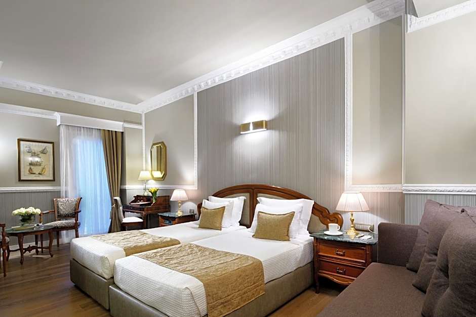 Located on the interior side of the hotel, this classically decorated room features draped curtains and elegant wallpapers. Facilities include a satellite TV, free WiFi, air conditioning and cosmetics.