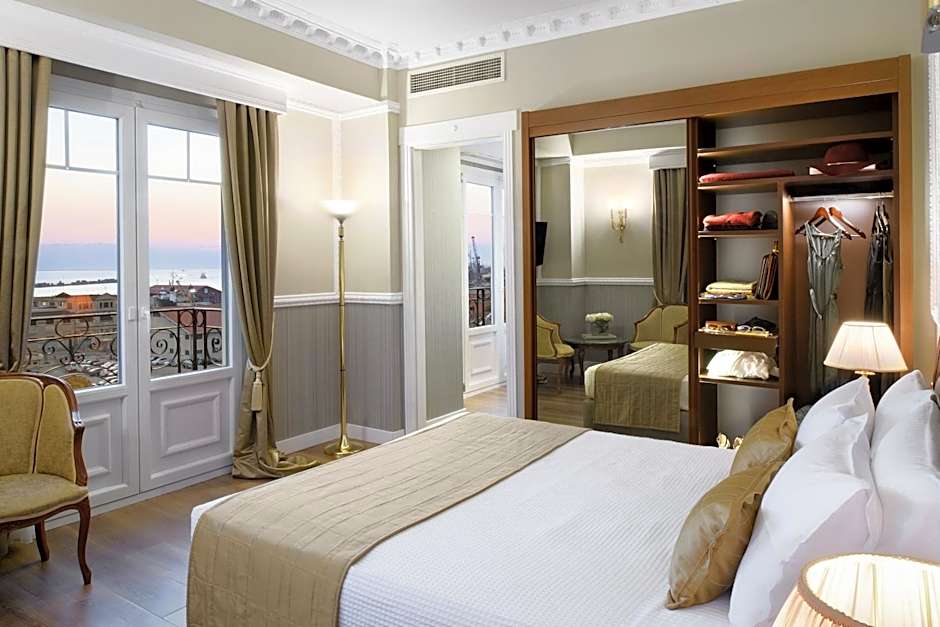 Luxurious suite with antique furnishings and views of Thermaikos Bay, Ladadika district and the historical buildings of Thessaloniki Port. It offers free private parking space.