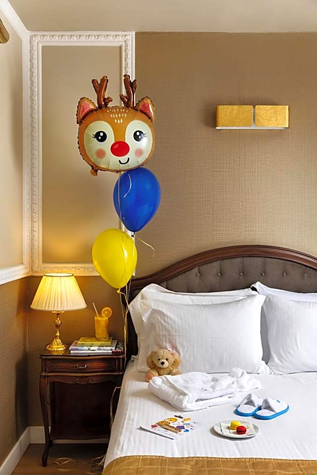 Located on the interior side of the hotel, this classically decorated room features draped curtains and elegant wallpapers. Facilities include a satellite TV, free WiFi, air conditioning and cosmetics.